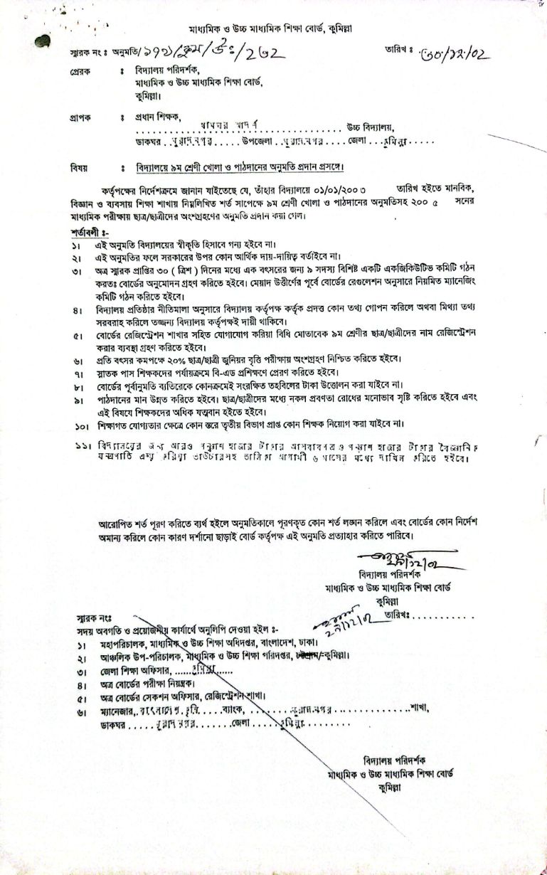 প্রচ্ছদ / পাঠদানের অনুমতি ও স্বীকৃতি